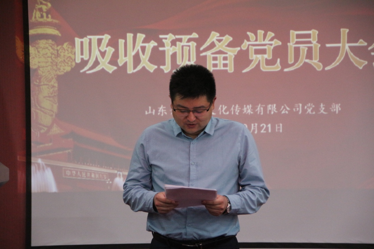 党支部组织委员张园园主持会议,按照党支部吸收预备党员程序,首先,党员发展对象张永华、闫金峰、黄娜依次汇报了自己考察期间的思想、学习、工作等方面的表现,表达了自己对党的热爱与忠诚,接受党组织考验的意愿,并提出希望被吸收为预备党员的申请;三位党员发展对象的培养人分别介绍了他们的情况,并提出各自的意见;同时,与会党员代表分别发表各自的意见。