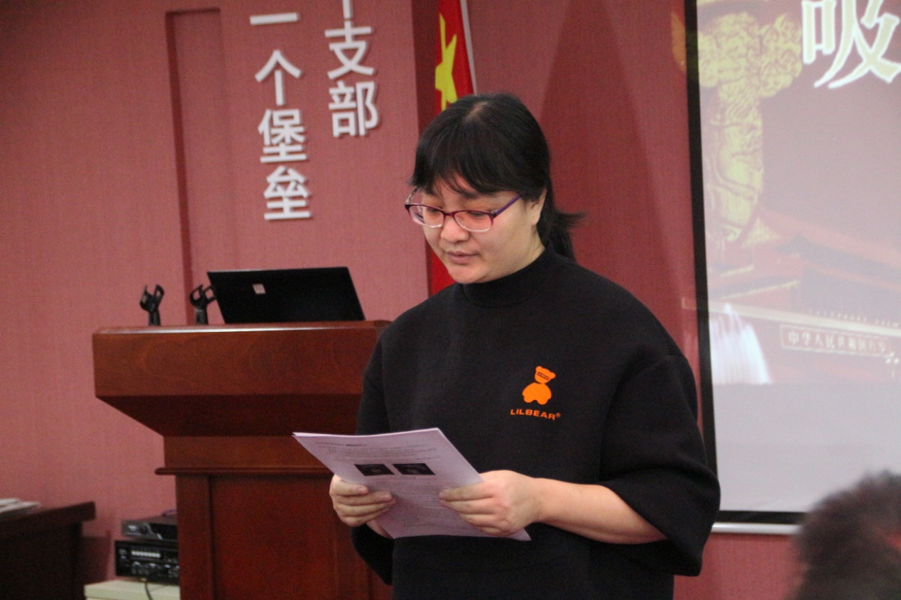 随后,有表决权的党员们进行无记名投票表决,现场唱票,全票通过,同意将党员发展对象张永华、闫金峰、黄娜三位同志吸收为支部预备党员。同时,支部委员会召开会议,王勇书记宣读支部决议,会后按照组织程序整理资料,上报上级党委审批。
