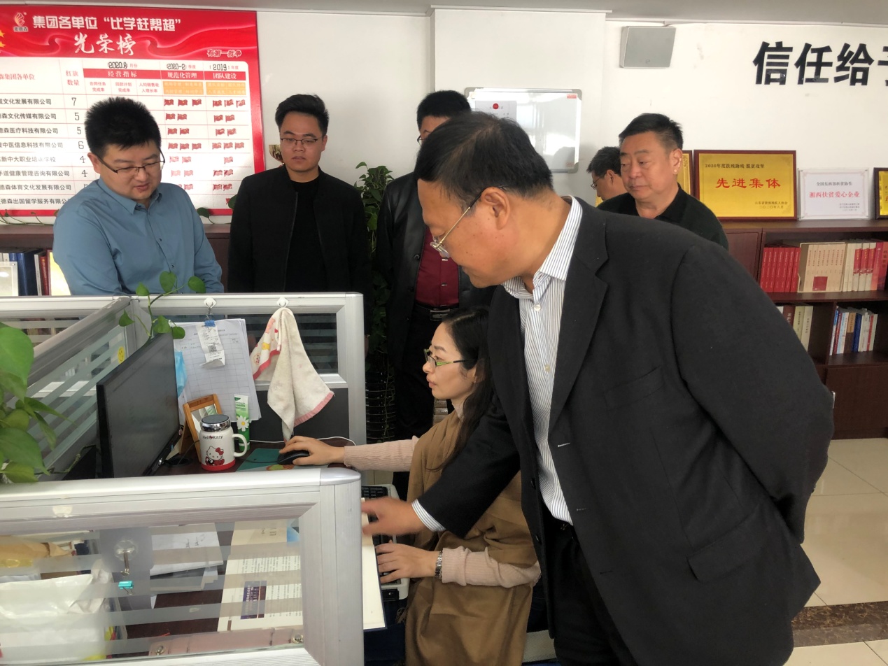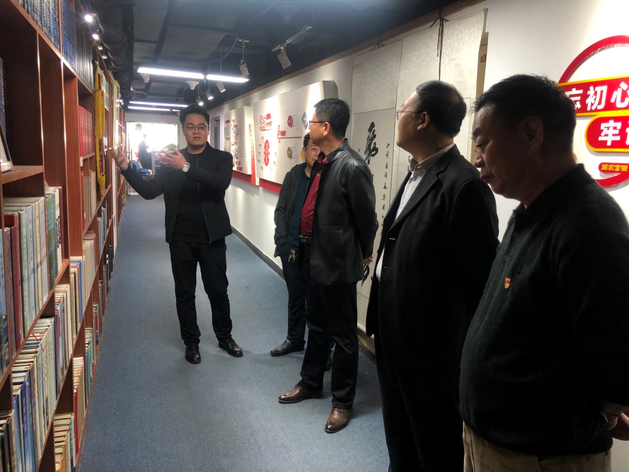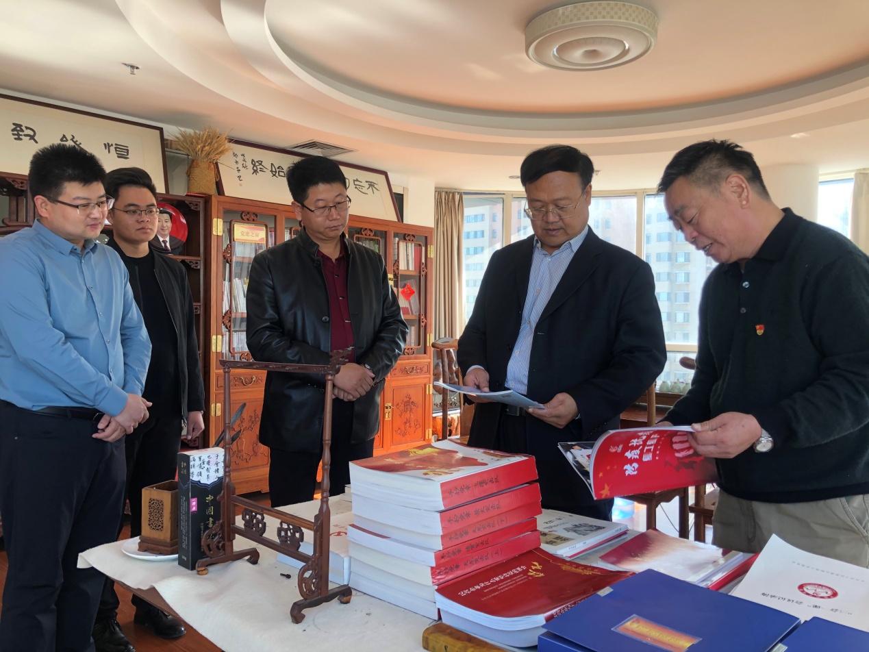 徐维国等领导对集团党建活动室、文化长廊及各部门办公区域进行了参观,详细查看了党支部“三会一课”工作材料、党员手抄党章、支部“党小组会”记录等党建工作材料,并现场听取了史志事业部业务经理任文辉对于史志出版印刷业务的汇报,对集团各项工作的开展给予充分肯定。