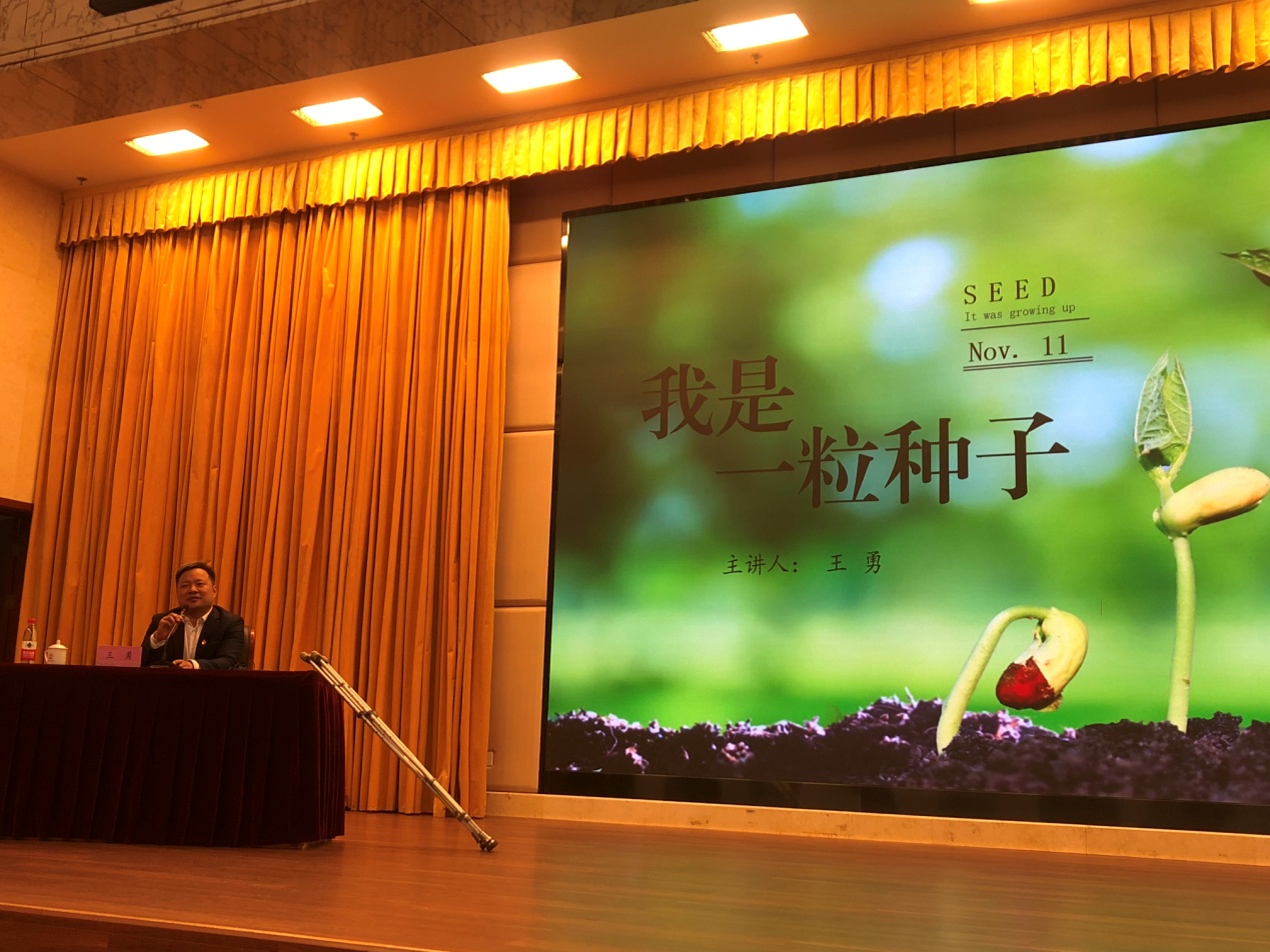 王勇博士在主题为《我是一粒种子》的宣讲中与大家分享了个人求学创业的成长经历,他表示,命运会眷顾每一个热爱生活和有梦想的人,“爱可以传递,我想温暖更多的人。”他勉励现场大学生们要有高远的理想,并把个人理想和国家理想结合起来,用奋斗实现理想,谱写新时代青春之歌。