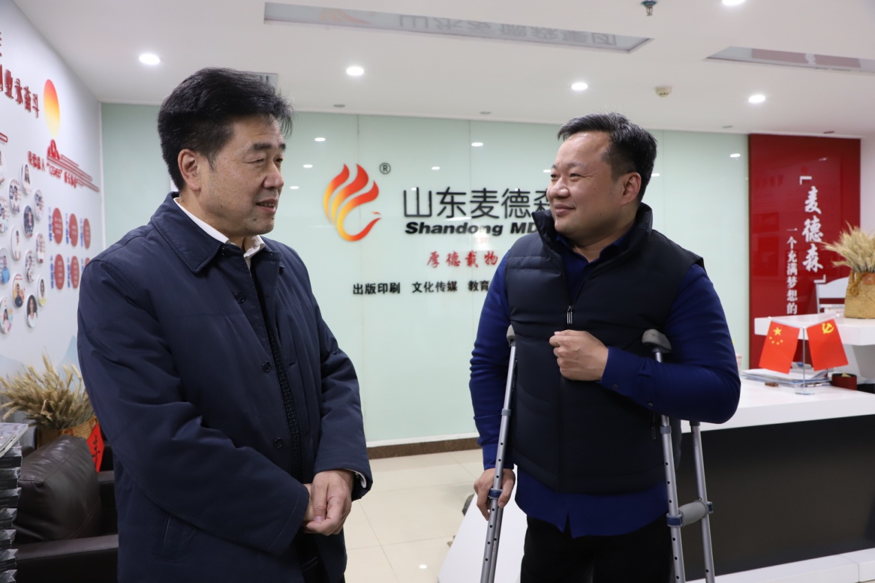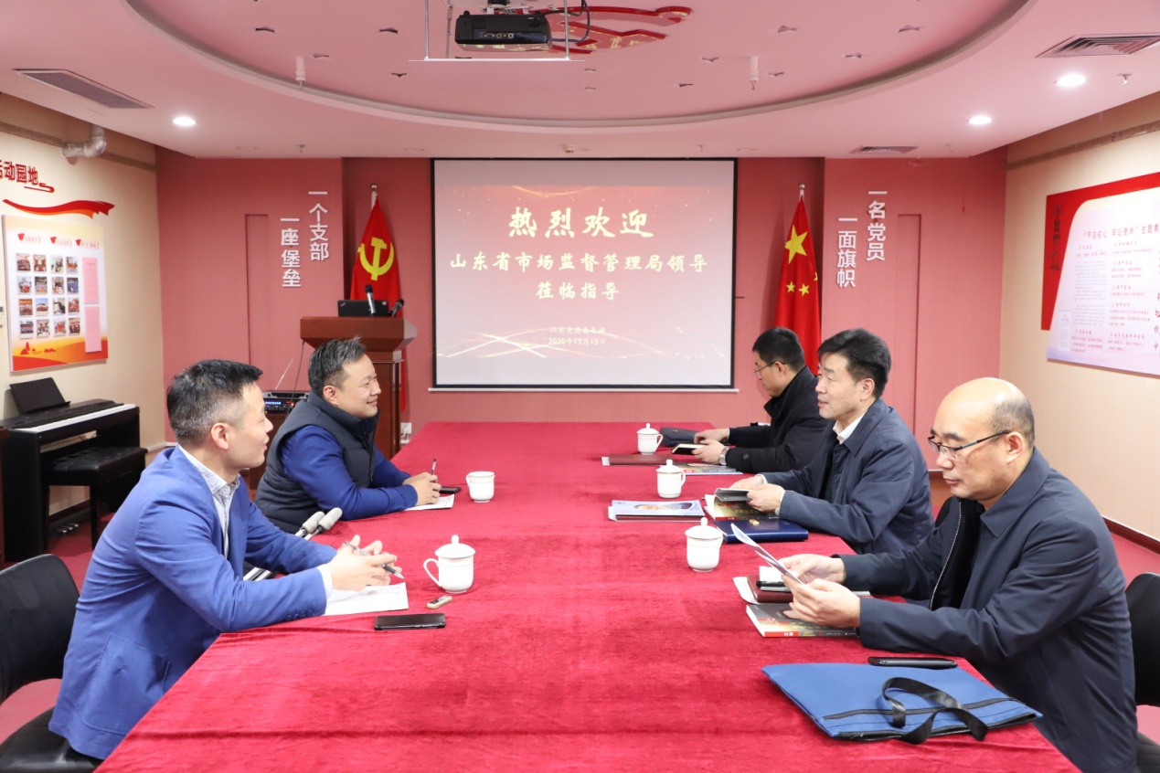 12月15日下午,山东省市场监督管理局副局长郭之祥等一行莅临麦德森,就集团党建工作、各业务建设发展情况进行调研。集团党支部书记王勇博士、执行董事王兴法等陪同。