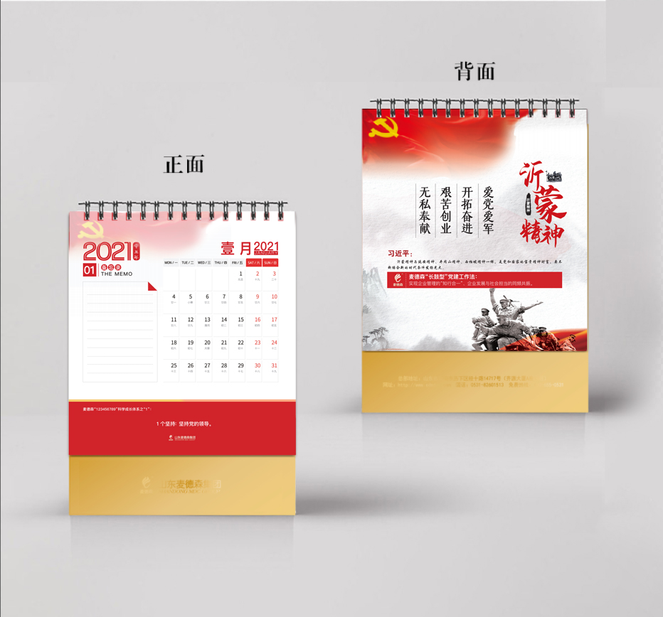 台历内容以弘扬我党的伟大精神为主线,以每个精神的代表人物的名言警句为依托,传承红色基因、凝聚党员力量、展现企业文化;页脚以简短的文字介绍集团各项业务,充分体现了麦德森用党建引领企业发展,用“红色基因”塑造团队灵魂的宗旨。
